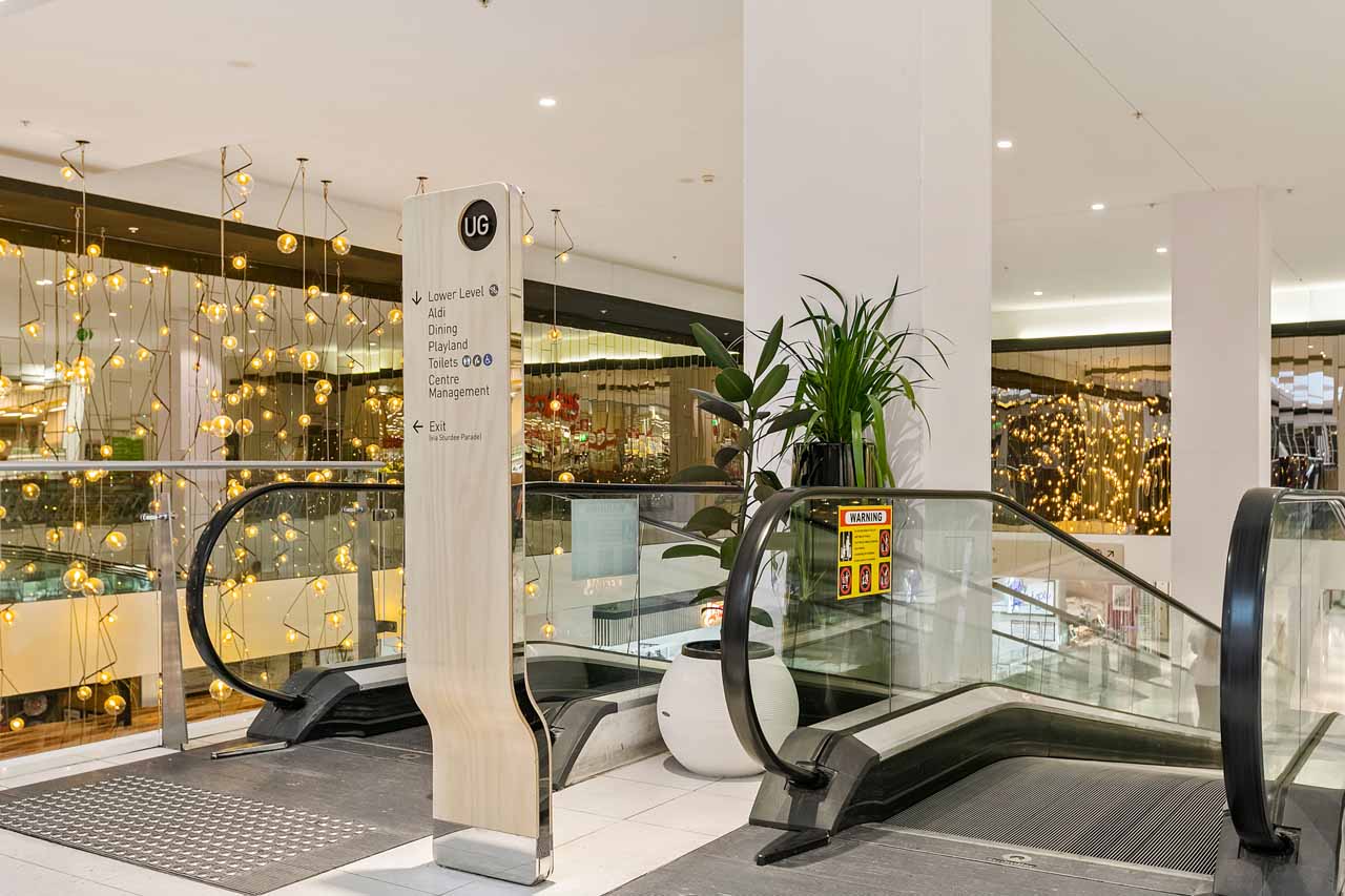 Refurbishment of shopping centre mall area including new bathrooms, centre management office, column cladding, new feature bulkheads, terrazzo tiles, lighting, new playland, entry upgrade and landscaping.